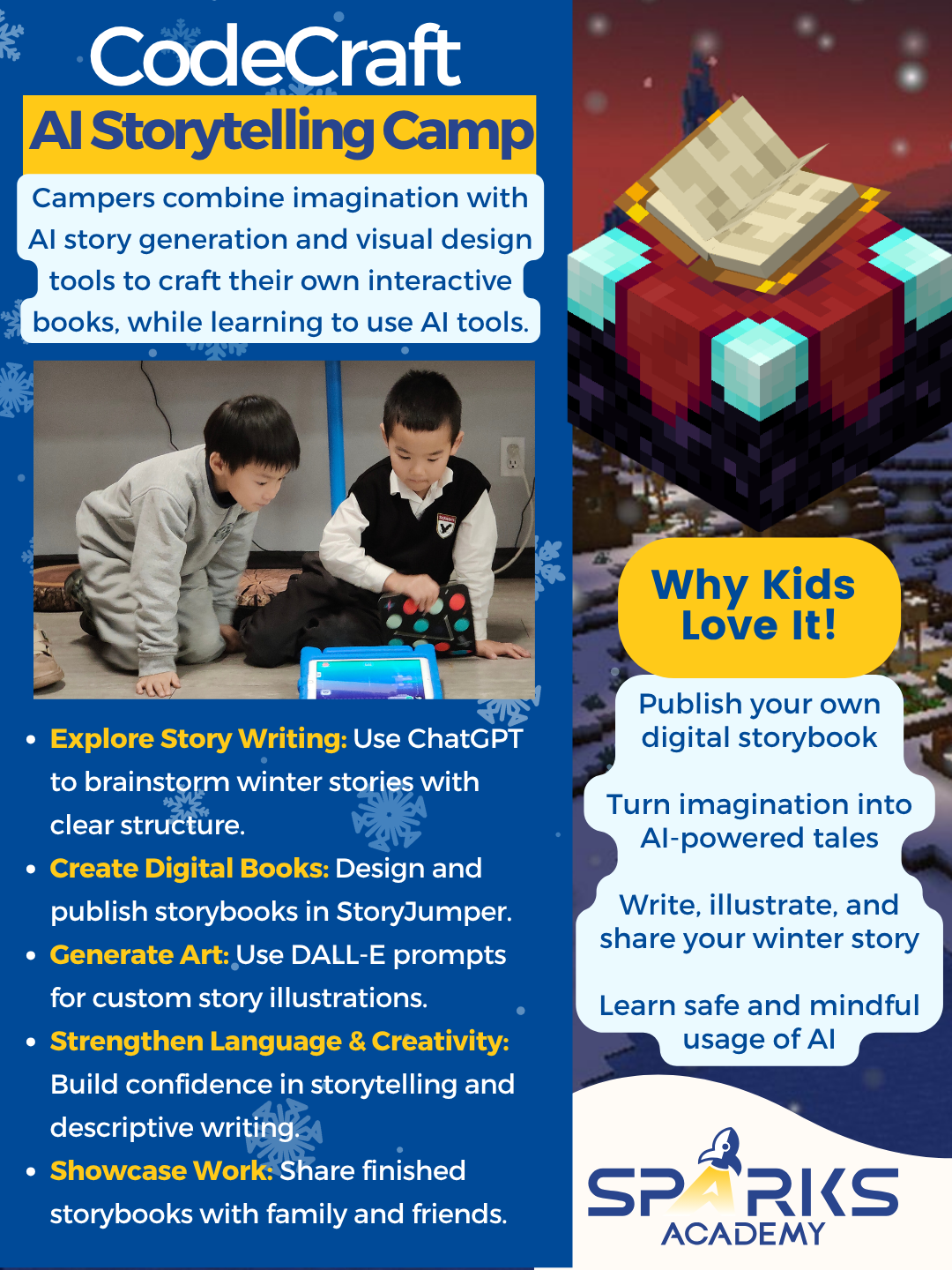 "Sparks is one of the best academy in Vancouver that teaches children from an innovative, hands-on, and professional perspective. Their programs are designed to spark Children’s creativity, interests and problem solving abilities."